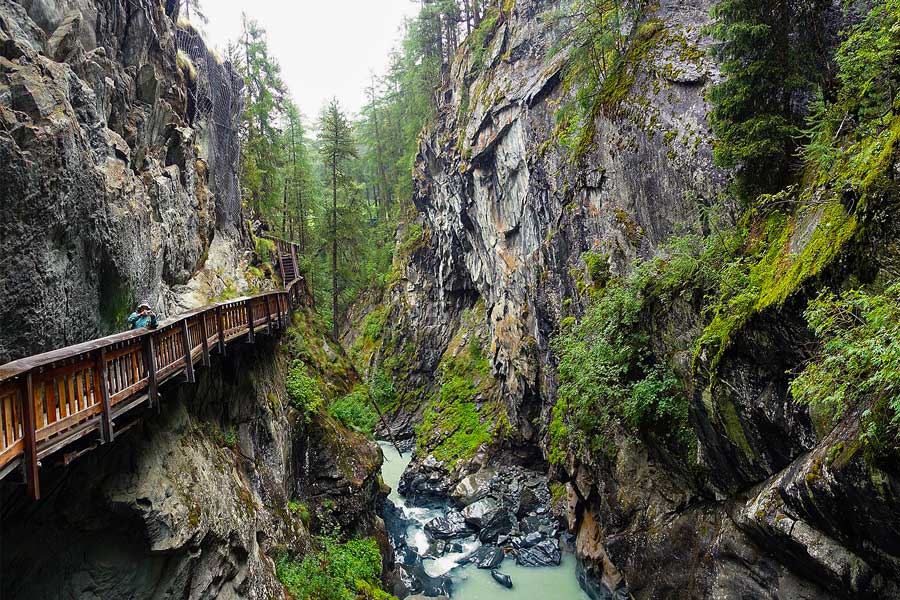 Diese Schlucht startet in Furi und führt in 3 Std. abwärts nach Blatten. Die Schlucht hat eine Länge von fast 1km und der Steig ist gut ausgebaut. Ein einmaliges Erlebnis mit Bergführer.